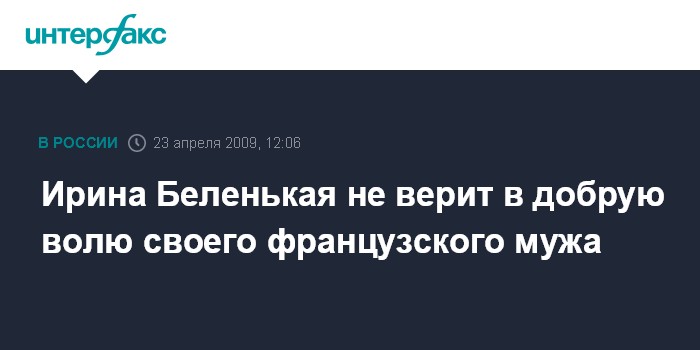 Ирина Беленькая не верит в добрую волю своего французского мужа