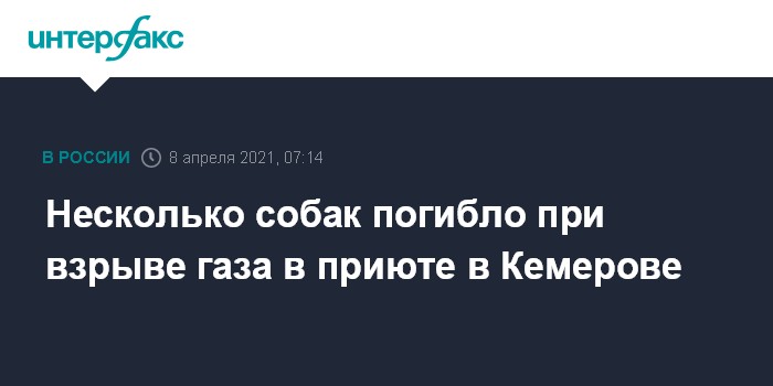 Москва. 8 апреля. INTERFAX.RU - Взрыв газового баллона произошел в частном жилом доме в Кемерове, где находилась передержка для животных, пострадала владелица жилища и три собаки, еще две погибли, говорится в сообщении, опубликованном в интернет-сообществе приюта в четверг.