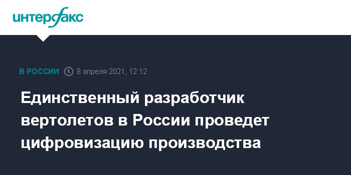 Единственный разработчик вертолетов в России проведет цифровизацию производства