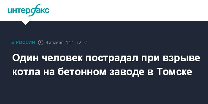 Москва. 9 апреля. INTERFAX.RU - Взрыв газовоздушной смеси внутри котла произошел на территории ООО "Завод ЖБК-100" в Томске.