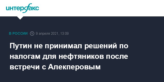 Путин не принимал решений по налогам для нефтяников после встречи с Алекперовым
