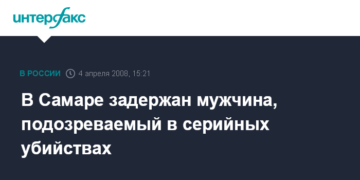 Москва. 4 апреля. INTERFAX.RU - В Самаре задержан местный житель, которого подозревают в семи убийствах, совершенных за последние два года.
