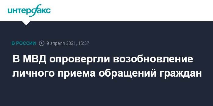 Москва. 9 апреля. INTERFAX.RU - В МВД России объяснили, что не могут принимать личные обращения граждан, поскольку приостановили эту работу с марта 2020 года в связи с пандемией.