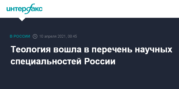 Теология вошла в перечень научных специальностей России