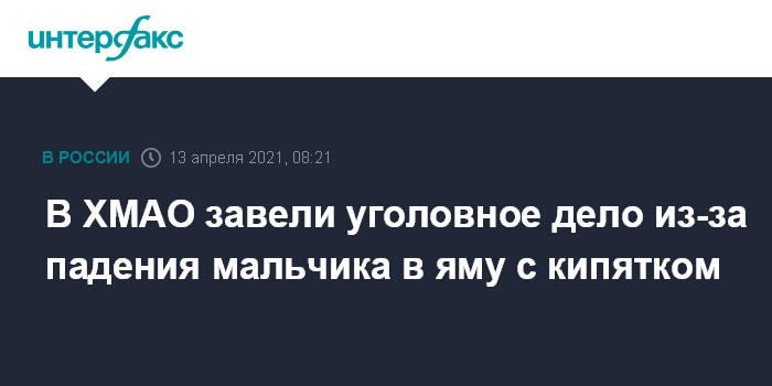 Москва. 13 апреля. INTERFAX.RU - Следственный отдел по городу Нижневартовск (ХМАО) возбудил уголовное дело по факту падения школьника в яму с кипятком, образовавшуюся на месте прорыва теплотрассы, сообщает следственное управление СКР по региону.