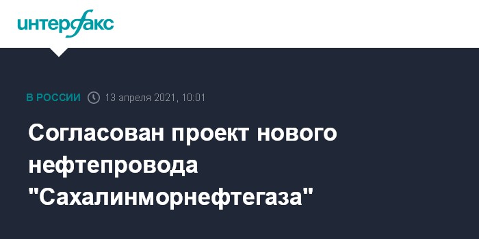 Москва. 13 апреля. INTERFAX.RU - Главгосэкспертиза сообщила, что дала положительное заключение на проектно-сметные документы на строительство участка нефтепровода на севере Сахалина, который позволит восстановить добычу нефти на месторождениях "Сахалинморнефтегаза".