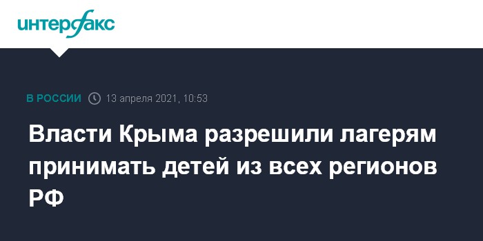 Москва. 13 апреля. INTERFAX.RU - Глава Крыма Сергей Аксенов во вторник внес в указ о режиме повышенной готовности изменения, разрешающие отдых в детских лагерях для жителей всех регионов России с конца мая.