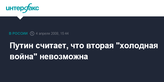 Путин считает, что вторая "холодная война" невозможна