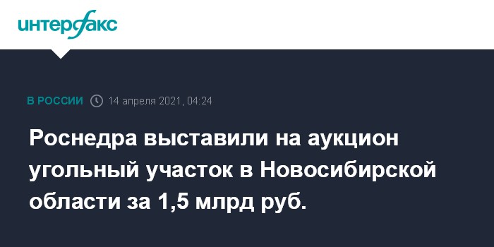 Роснедра выставили на аукцион угольный участок в Новосибирской области за 1,5 млрд руб.