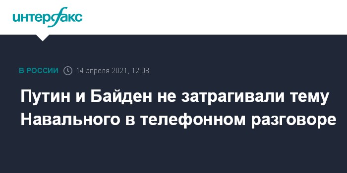 Москва. 14 апреля. INTERFAX.RU - В ходе телефонного разговора президентов России и США Владимира Путина и Джо Байдена тема оппозиционера Алексея Навального не затрагивалась, заявил пресс-секретарь российского лидера Дмитрий Песков.