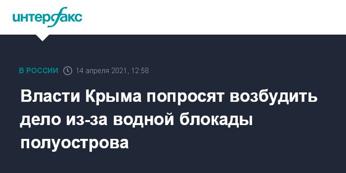 Власти Крыма попросят возбудить дело из-за водной блокады полуострова