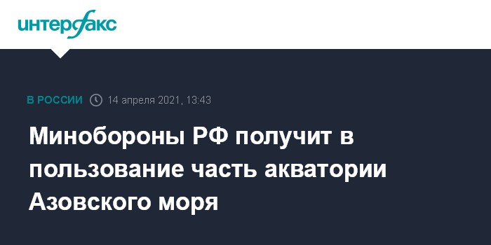 Москва. 14 апреля. INTERFAX.RU - Премьер-министр РФ Михаил Мишустин подписал распоряжение о передаче части акватории Таганрогского залива Азовского моря в пользование Минобороны РФ. Документ опубликован на официальном интернет-портале правовой информации.