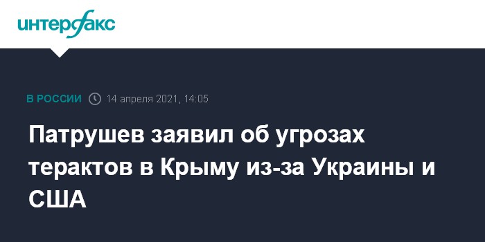 Москва. 14 апреля. INTERFAX.RU - Секретарь Совбеза РФ Николай Патрушев заявил, что в Крыму отмечается угроза терактов, они могут произойти из-за антироссийской деятельности США, НАТО, ряда стран Евросоюза и Украины.