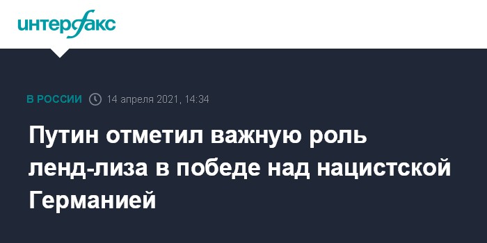 Москва. 14 апреля. INTERFAX.RU - Поставки по ленд-лизу из США во времена Великой Отечественной войны сыграли существенную роль в победе СССР над нацизмом, заявил президент РФ Владимир Путин.