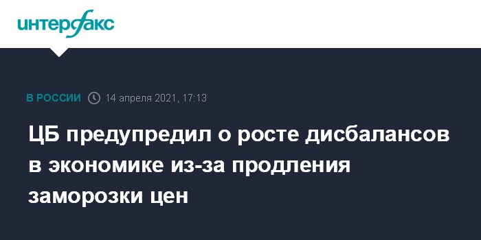 ЦБ предупредил о росте дисбалансов в экономике из-за продления заморозки цен