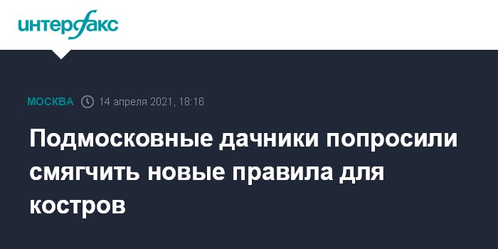 Москва. 14 апреля. INTERFAX.RU - Союз дачников Подмосковья попросил МЧС смягчить новые правила, по которым в садовых товариществах (СНТ) с 1 января запрещено жечь костры ближе чем в 30 метрах от строений, а жарить шашлыки - ближе чем в пяти метрах.