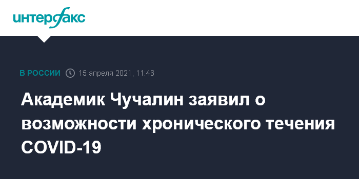 Москва. 15 апреля. INTERFAX.RU - Исследования постковидного периода показывают, что COVID-19 может протекать в хронической форме, заявил в четверг академик РАН, заведующий кафедрой госпитальной терапии РНИМУ имени Пирогова Александр Чучалин.
