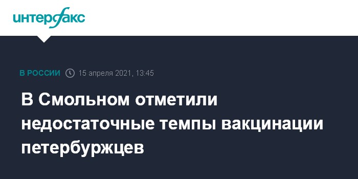 Москва. 15 апреля. INTERFAX.RU - В Петербурге вакцинация от коронавируса идет в два раза медленнее, чем нужно для быстрого формирования иммунной прослойки, заявил глава городского комитета по здравоохранению Дмитрий Лисовец.