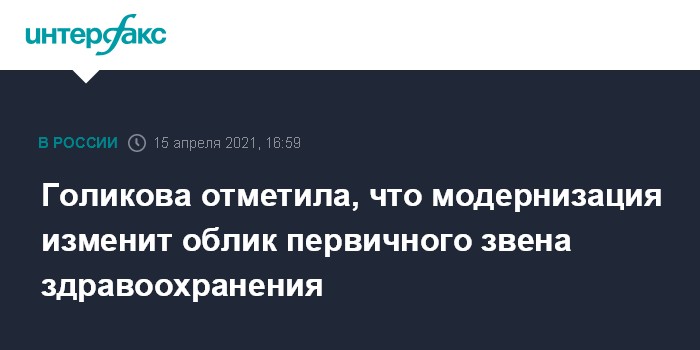 Голикова отметила, что модернизация изменит облик первичного звена здравоохранения