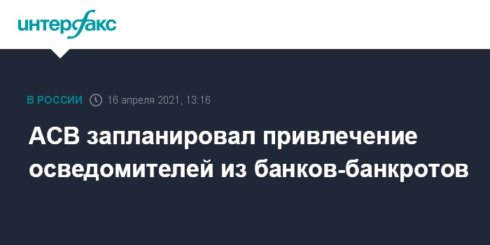 АСВ запланировал привлечение осведомителей из банков-банкротов