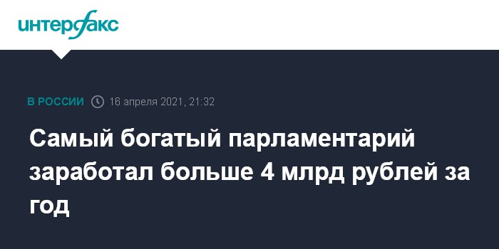 Самый богатый парламентарий заработал больше 4 млрд рублей за год
