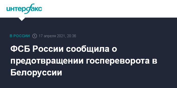 ФСБ России сообщила о предотвращении госпереворота в Белоруссии