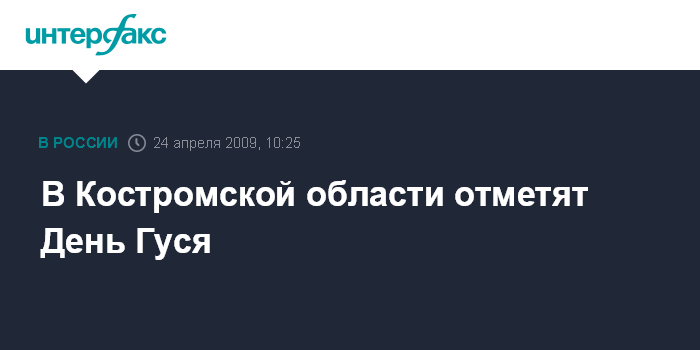 Москва. 24 апреля. INTERFAX.RU - В Кологриве Костромской области 2 мая состоится праздник День гуся, сообщили "Интерфаксу" в пятницу в областном департаменте внешнеэкономических и межрегиональных связей. "Программа праздника включает выставку-конкурс поделок, сделанных школьниками района, выставку-распродажу изделий мастеров народных промыслов, спортивно-развлекательные конкурсы: быстрый гусь, бег в ластах, нарисуй гуся, поймай гуся, "окольцуй" гуся и другие", - рассказал собеседник агентства.