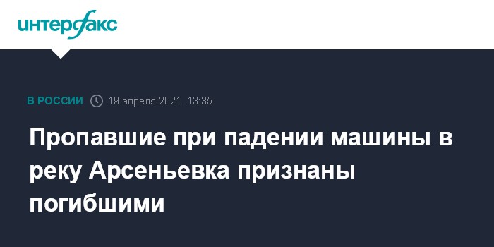 Пропавшие при падении машины в реку Арсеньевка признаны погибшими