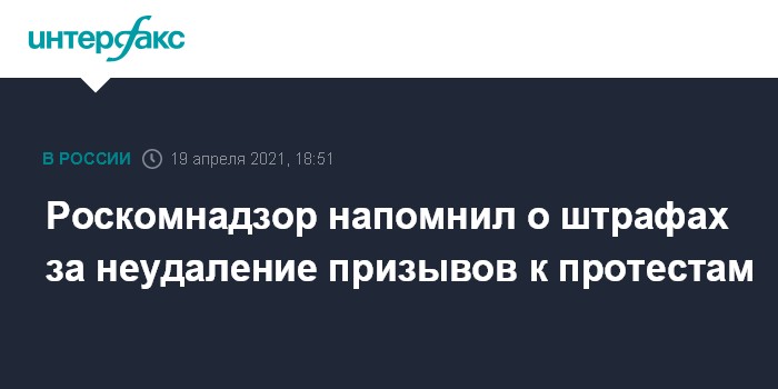Роскомнадзор напомнил о штрафах за неудаление призывов к протестам