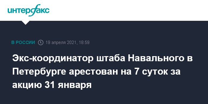 Экс-координатор штаба Навального в Петербурге арестован на 7 суток за акцию 31 января