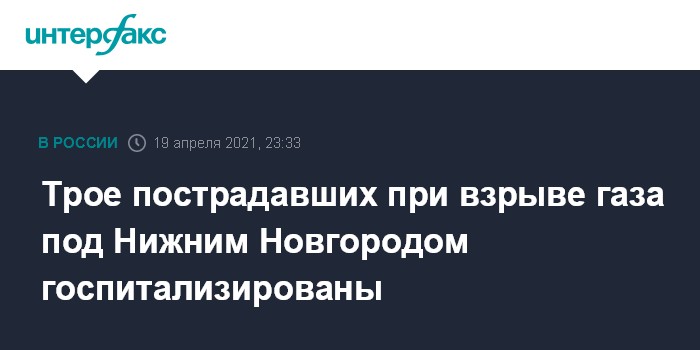 Москва. 19 апреля. INTERFAX.RU - Три человека госпитализированы с ожогами и переломами после взрыва газа в жилом доме в селе Маргуша Нижегородской области, сообщает пресс-служба губернатора региона.
