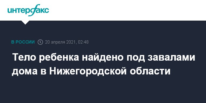 Москва. 20 апреля. INTERFAX.RU - Спасатели нашли тело погибшего ребенка под завалами дома в селе Маргуша Нижегородской области, сообщили журналистам в пресс-службе МЧС РФ.
