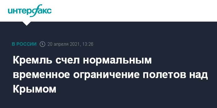Вопрос был задан журналистами в ходе общения с Песковым во вторник: пресс-секретаря попросили прокомментировать планы по запрету полетов над Крымом в период с 20 по 24 апреля.