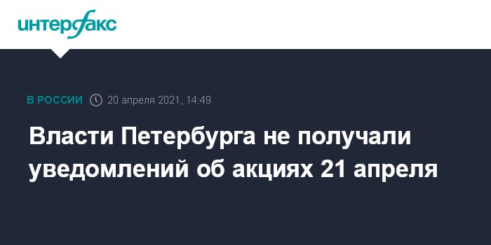 Власти Петербурга не получали уведомлений об акциях 21 апреля