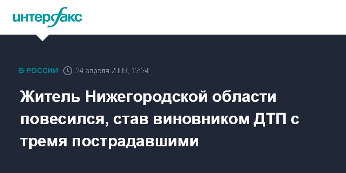 Москва. 24 апреля. INTERFAX.RU - Житель Тоншаевского района Нижегородской области покончил жизнь самоубийством после того, как по его вине в ДТП пострадали три человека.