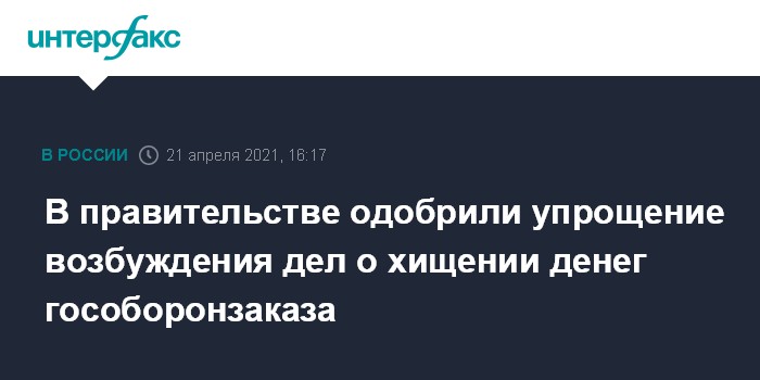 В правительстве одобрили упрощение возбуждения дел о хищении денег гособоронзаказа