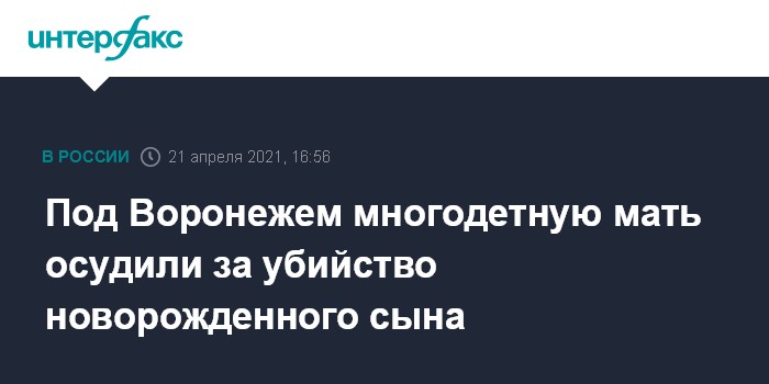 Москва. 21 апреля. INTERFAX.RU - Суд вынес приговор 33-летней жительницы Каменского района Воронежской области за убийство своего новорожденного ребенка, сообщает следственное управление СКР по региону в среду.