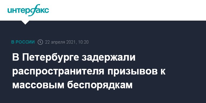 В этот же день информированный источник "Интерфакса" сообщил, что 21 апреля безработного 40-летнего и ранее судимого петербуржца задержали за призывы в интернете к насилию в отношении сотрудников правоохранительных органов. На него завели дело о публичных призывах к экстремизму (ч.2 ст.280 УК).