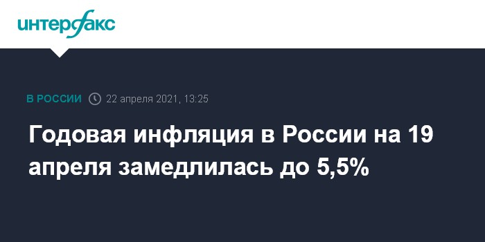 Годовая инфляция в России на 19 апреля замедлилась до 5,5%