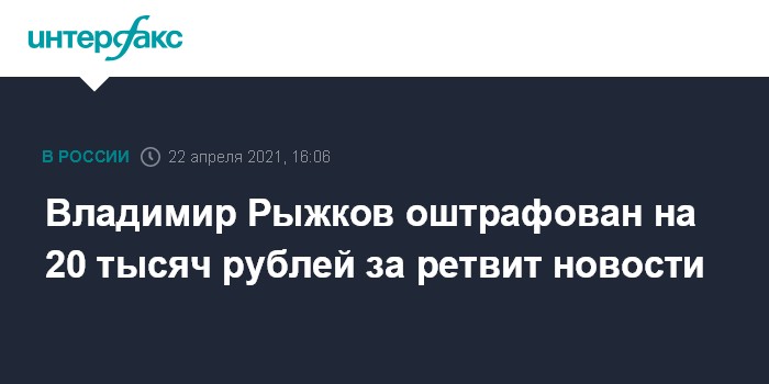 Владимир Рыжков оштрафован на 20 тысяч рублей за ретвит новости