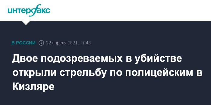 Двое мужчин подозревались в избиении человека до смерти и краже и скрывались от полицейских. Их обнаружили в Кизляре. "При задержании один из них забежал в дом на улице Шевченко и выстрелил по полицейским. Никто не пострадал. В последующем он сложил оружие и сдался", - сказал собеседник агентства.