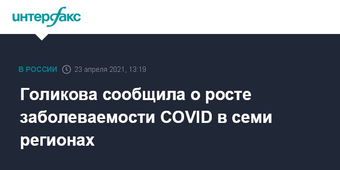 Москва. 23 апреля. INTERFAX.RU - Рост заболевания коронавирусом наблюдается в семи регионах России, сообщила вице-премьер Татьяна Голикова.