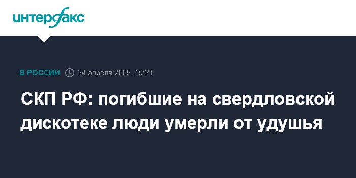 СКП РФ: погибшие на свердловской дискотеке люди умерли от удушья