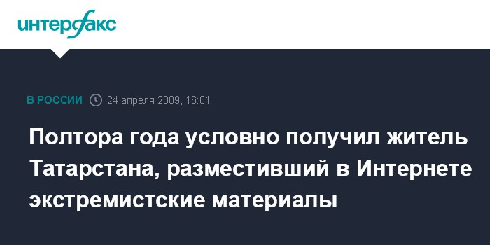 Полтора года условно получил житель Татарстана, разместивший в Интернете экстремистские материалы