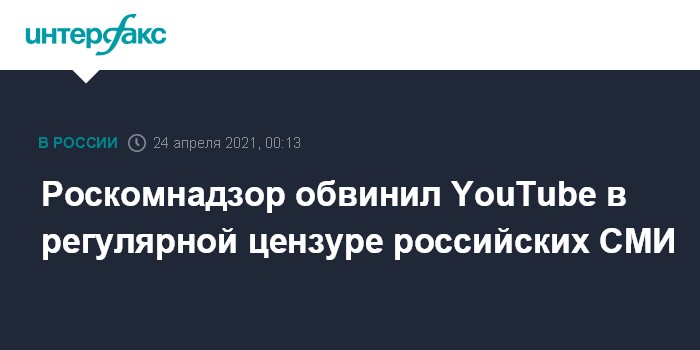 По данным РКН, в 2020 году YouTube девять раз ограничивал доступ к аккаунтам российских СМИ и трижды - к их материалам, а за четыре месяца 2021 года были заблокированы три аккаунта и пять материалов российских СМИ. Ограничения затронули в том числе официальные аккаунты НТВ, России 24, ТВЦ, Russia Today, Sputnik.