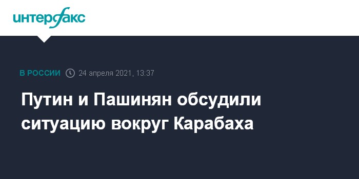 Москва. 24 апреля. INTERFAX.RU - По инициативе армянской стороны состоялся телефонный разговор президента России Владимира Путина с премьером Армении Николом Пашиняном, сообщили в субботу в пресс-службе Кремля.