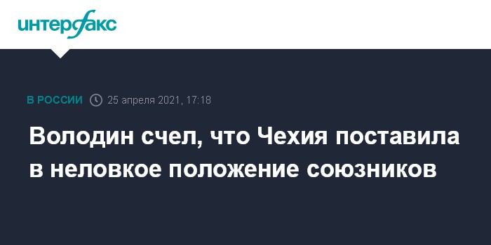 Володин счел, что Чехия поставила в неловкое положение союзников