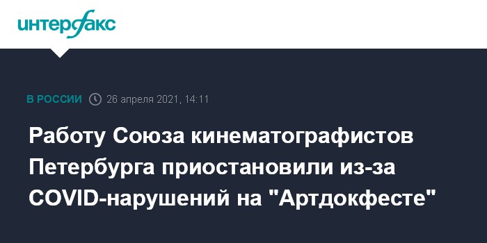 Как сообщалось, в начале апреля представители Роспотребнадзора Петербурга пришли с проверкой в Дом кино на Караванной улице, где проходили показы фильмов фестиваля "Артдокфест". Сотрудники ведомства выявили ряд нарушений антикоронавирусных санитарных правил, в том числе обнаружили на фестивале зрителей без масок.