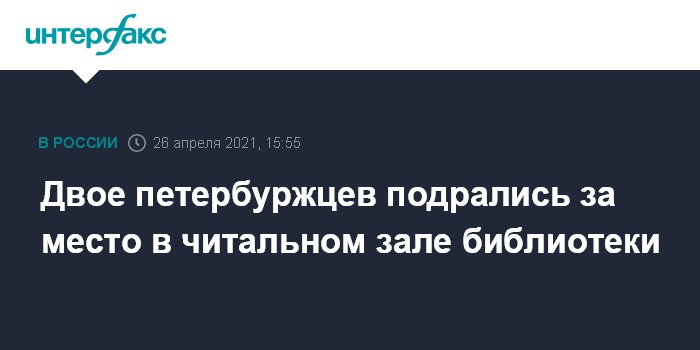 Москва. 26 апреля. INTERFAX.RU - Посетители Российской национальной библиотеки (РНБ) в Петербурге подрались из-за места в читальном зале, сообщает в понедельник пресс-служба управления вневедомственной охраны (УВО) региона.