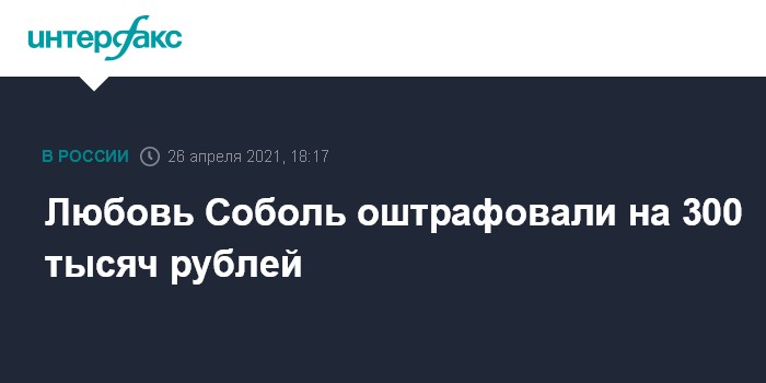 "Соболь признана виновной в правонарушении, предусмотренном частью 8 статьи 20.2 КОАП РФ (повторное нарушение установленного порядка организации либо проведения акции), ей назначен административный штраф в размере 300 тыс. рублей", - сообщили "Интерфаксу" в пресс-службе суда в понедельник.